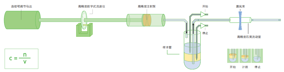 CyFlow® Cube 6采用定體積細(xì)胞絕對計(jì)數(shù)方法(TVAC)對所有顆?;蚣?xì)胞的濃度進(jìn)行測定。這種先進(jìn)的專利技術(shù)完全基于絕對計(jì)數(shù)來實(shí)現(xiàn),即:顆粒濃度(C)是給定體積(V)內(nèi)的細(xì)胞數(shù)量(N),C= N/V。給定體積(V)是在已知直徑的的樣品管內(nèi)兩個(gè)電極之間的距離或者控制樣品速度的體積進(jìn)行測量。