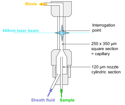 Partec擁有超過40年的流動(dòng)室設(shè)計(jì)經(jīng)驗(yàn)與技術(shù),其生產(chǎn)的高機(jī)械精密度石英流動(dòng)室內(nèi)徑250um×350um,不易堵塞,散射粒度范圍跨度涵蓋100nm至100μm。其核心技術(shù)是顆粒在高速流經(jīng)流動(dòng)室時(shí),通過高壓鞘液的包裹,準(zhǔn)確、穩(wěn)定、連續(xù)地通過各個(gè)激光的光斑中心,被激發(fā)的熒光信號通過光膠耦合下的大孔徑物鏡被最大程度地接收。高精度石英流動(dòng)室的專利技術(shù)可保證所有參數(shù)的精確度達(dá)到很高,即變異系數(shù)CV≤2%,樣本采用計(jì)算機(jī)控制推進(jìn)器技術(shù),其單一方向通過流動(dòng)室,有效避免了交叉污染。