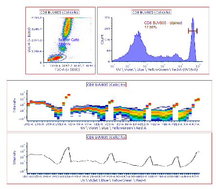 Windows? CyView?軟件可以完成儀器控制、數(shù)據(jù)分析的各種功能,這些功能包括數(shù)據(jù)的實(shí)時(shí)采集、實(shí)時(shí)或離線數(shù)據(jù)分析、實(shí)時(shí)或離線的熒光補(bǔ)償?shù)裙δ堋T撥浖勺杂山M合不同的參數(shù)設(shè)置界面和數(shù)據(jù)處理界面,便于不同應(yīng)用程序之間完成切換。該軟件可自由組合不同的參數(shù)設(shè)置界面和數(shù)據(jù)處理界面,便于不同應(yīng)用程序之間完成切換。CyView?被用于免疫學(xué)、微生物學(xué)、細(xì)胞周期分析、DNA定量、倍性分析等所有應(yīng)用領(lǐng)域。檢測數(shù)據(jù)可以流式細(xì)胞儀標(biāo)準(zhǔn)文件FCS格式存儲,以方便其他第三方分析軟件進(jìn)行數(shù)據(jù)處理。CyView?一個(gè)獨(dú)特的功能是,在進(jìn)行分析染料的同時(shí),對熒光的光譜重疊進(jìn)行數(shù)字形式的在線/離線顏色串?dāng)_補(bǔ)償。N色軟件補(bǔ)償算法允許在任何參數(shù)之間進(jìn)行串?dāng)_校正,而不需要重新跑樣。